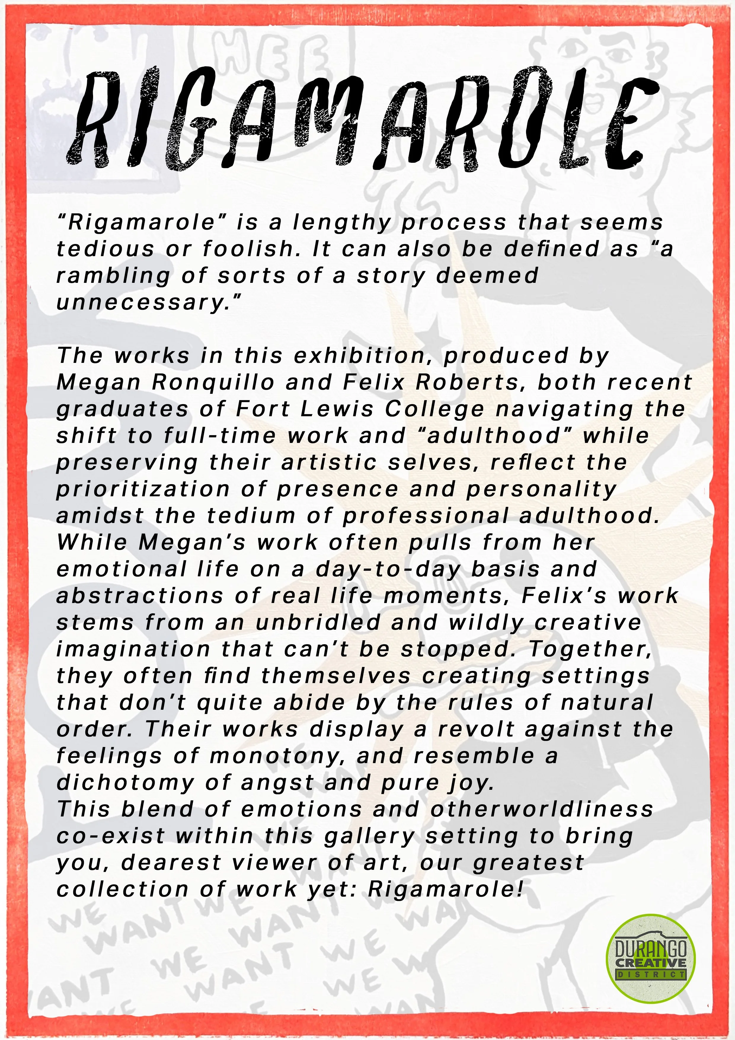 The Durango Creative District Community Gallery features solo exhibitions by local artists (seasoned and emerging), collaborative exhibitions with other non-profits, community-centric group exhibitions, guest curated exhibitions, and regional artist spotlights in tandem with other Creative Districts. With an aim to showcase Durango’s dynamic creative scene through visual storytelling, each exhibition is uniquely curated and accompanied by engaging community programming.